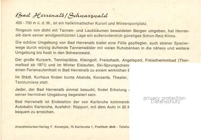 Bad_Herrenalb Haus Pfeiffer Zimmer Bad_Herrenalb postalisch nicht gelaufen nach 1965 Werbekarte (keine Postkarte) Erhaltung siehe scans [WerneD78] Werbekarte (keine Postkarte) WernPID7