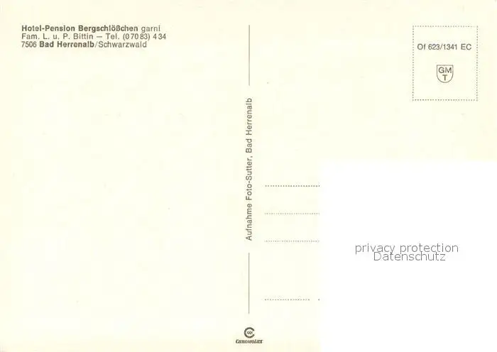 Bad_Herrenalb Hotel Pension Bergschloesschen im Schwarzwald Bad_Herrenalb postalisch nicht gelaufen nach 1965 Erhaltung siehe scans [FriedD77] Frierer