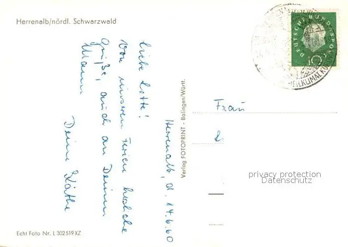 Bad_Herrenalb Panorama Kurort im Schwarzwald Bad_Herrenalb postalisch gelaufen 1960 Erhaltung siehe scans [FriedD77] Frierer