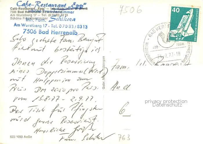 Bad_Herrenalb Restaurant-Cafe Epp Aussenansicht m. Terrasse Bad_Herrenalb postalisch gelaufen 1977 Erhaltung siehe scans [LiesaD40] LiesID40