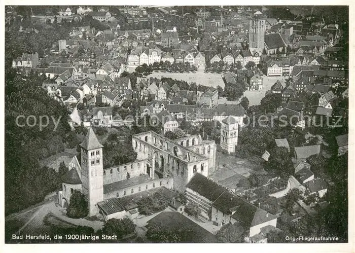 Bad_Hersfeld Fliegeraufnahme mit Schloss und Kirche Bad_Hersfeld postalisch nicht gelaufen 1921-1965 Erhaltung siehe scans [WerneD78] WernPID7