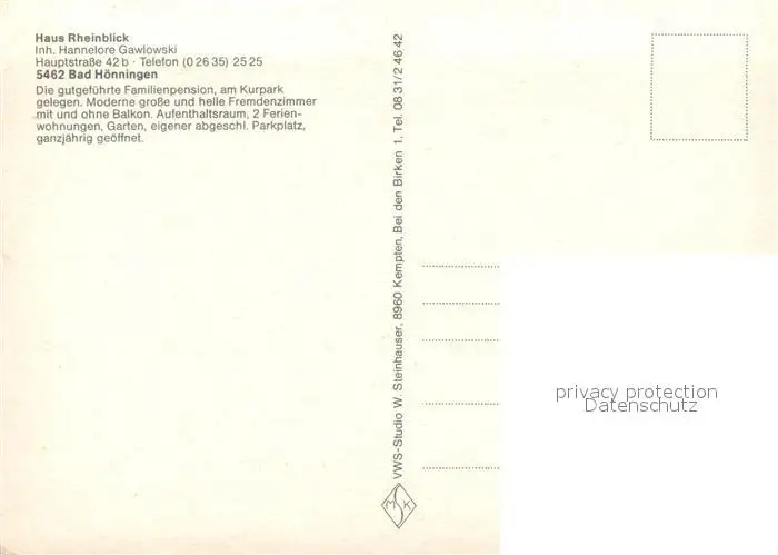 Bad_Hoenningen Gaestehaus Pension Haus Rheinblick Bad_Hoenningen postalisch nicht gelaufen nach 1965 Erhaltung siehe scans [FriedD77] Frierer