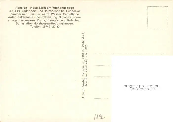 Bad_Holzhausen_Luebbecke Pension Haus Stork am Wiehengebirge Bad_Holzhausen_Luebbecke postalisch nicht gelaufen nach 1965 Erhaltung siehe scans [FriedD77] Frierer
