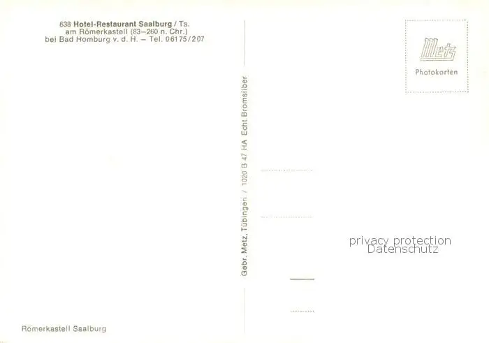 Bad_Homburg Hotel Restaurant Saalburg Am Roemerkastell Bad_Homburg postalisch nicht gelaufen 1921-1965 Erhaltung siehe scans [WerneD78] WernPID7