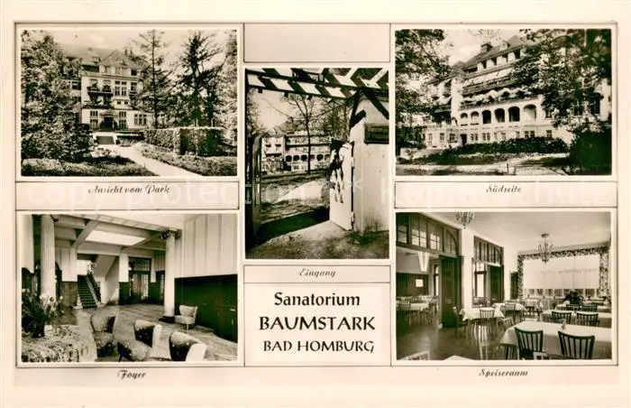 AK / Ansichtskarte Bad_Homburg Sanatorium Baumstark Park Eingang Suedseite Foyer Speiseraum Bad_Homburg