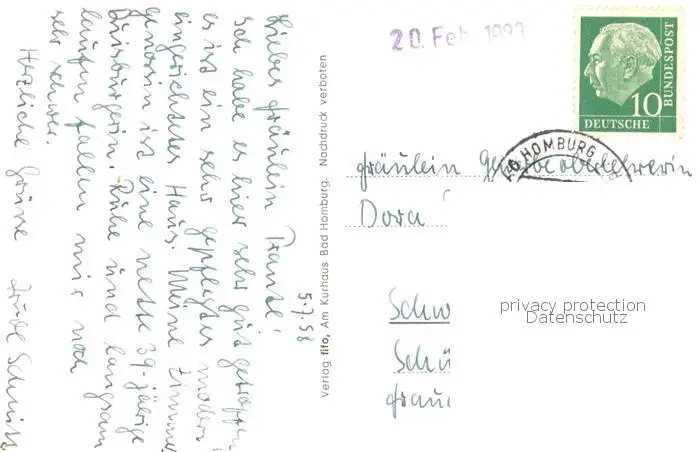 Bad_Homburg Sanatorium Baumstark Park Eingang Suedseite Foyer Speiseraum Bad_Homburg postalisch gelaufen 1958 Erhaltung siehe scans [WerneD78] WernPID7