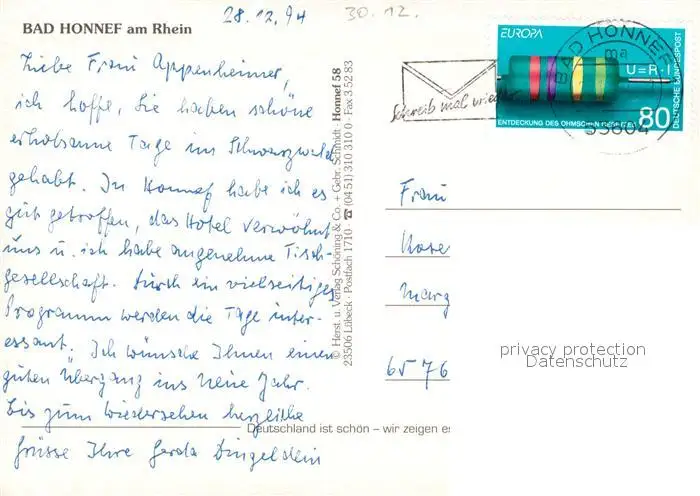 Bad_Honnef Bad_Honnef postalisch gelaufen 1994 Erhaltung siehe scans [NatalD47] NataID47