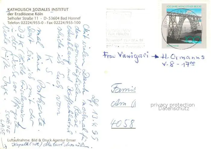 Bad_Honnef Kategorie Alte Ansichtskarten Postkarten bx52865 Bad_Honnef Katholisch Soziales Institut der Erzdioezese Koeln Fliegeraufnahme Bad_Honnef postalisch gelaufen 1999 Erhaltung siehe scans [FriedD77]