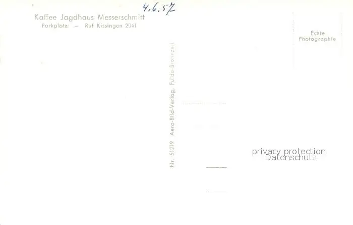 Bad_Kissingen Kategorie Alte Ansichtskarten Postkarten bx54234 Bad_Kissingen Kaffee Jagdhaus Messerschmitt Bad_Kissingen postalisch nicht gelaufen 1957 Erhaltung siehe scans [NatalD47]