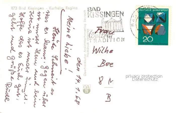 Bad_Kissingen Kurheim Regina Bad_Kissingen postalisch gelaufen 1968 Erhaltung siehe scans [FriedD77] Frierer
