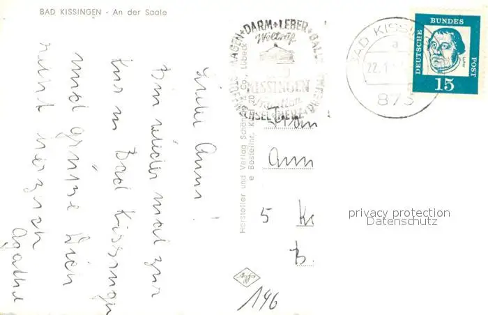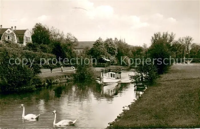 Bad_Kissingen Partie an der Saale Schwaene Fahrgastschiff Bad_Kissingen postalisch gelaufen 1964 Erhaltung siehe scans [FriedD77] Frierer