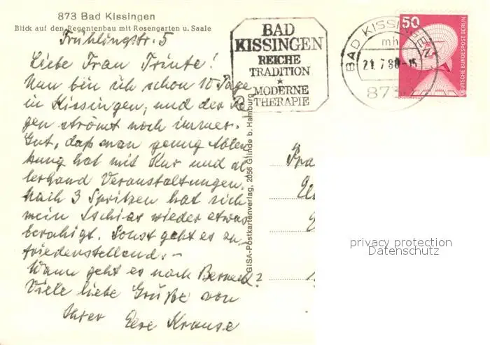 Bad_Kissingen Regentenbau Rosengarten u. Saale Bad_Kissingen postalisch gelaufen 1980 Erhaltung siehe scans [LiesaD40] LiesID40