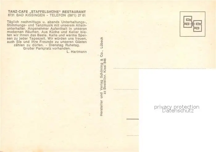 Bad_Kissingen Tanzcafe Restaurant Staffelshoehe Bad_Kissingen postalisch nicht gelaufen nach 1965 Erhaltung siehe scans [FriedD77] Frierer