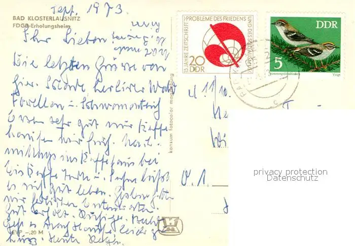 Bad_Klosterlausnitz FDGB Erholungsheim Bad_Klosterlausnitz postalisch gelaufen 1973 Erhaltung siehe scans [WerneD78] WernPID7