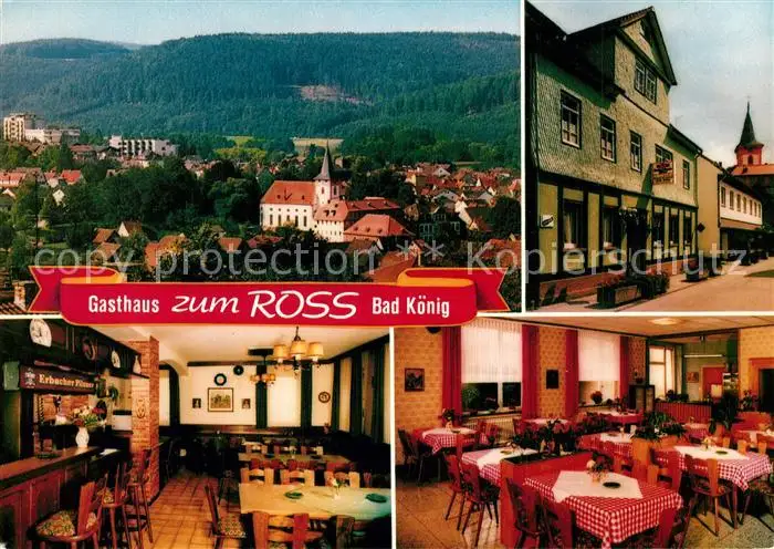 AK / Ansichtskarte Bad_Koenig_Odenwald Gasthaus Pension Zum Ross Restaurant Stadtbild mit Kirche Bad_Koenig_Odenwald