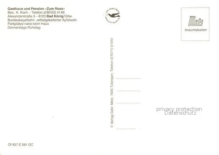 Bad_Koenig_Odenwald Gasthaus Pension Zum Ross Restaurant Stadtbild mit Kirche Bad_Koenig_Odenwald postalisch nicht gelaufen nach 1965 Erhaltung siehe scans [FriedD77] Frierer