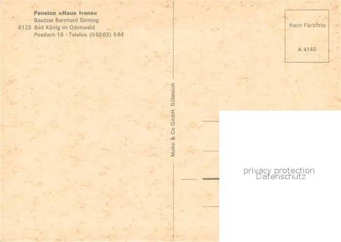 Bad_Koenig_Odenwald Pension Haus Irene Bad_Koenig_Odenwald postalisch nicht gelaufen nach 1965 Erhaltung siehe scans [WerneD78] WernPID7