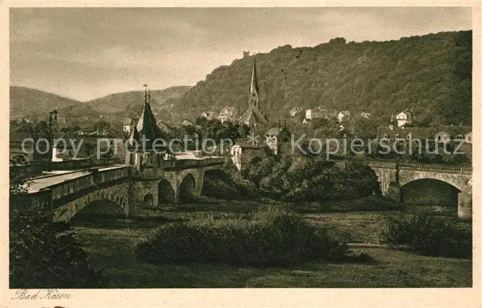 Bad_Koesen Stadtpanorama Blick ueber die Saale Kupfertiefdruck Bad_Koesen postalisch nicht gelaufen 1921-1965 Erhaltung siehe scans [FriedD77] Frierer
