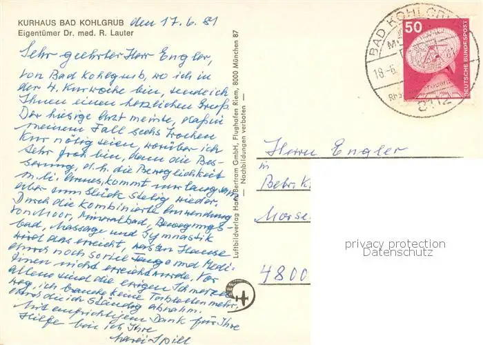 Bad_Kohlgrub Kurhaus Fliegeraufnahme Bad_Kohlgrub postalisch gelaufen 1981 Erhaltung siehe scans [WerneD78] WernPID7