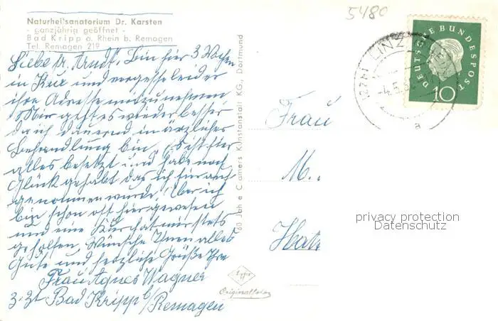 Bad_Kripp Naturheilsanatorium Dr Karsten Bad_Kripp postalisch gelaufen 1958 Erhaltung siehe scans [FriedD77] Frierer