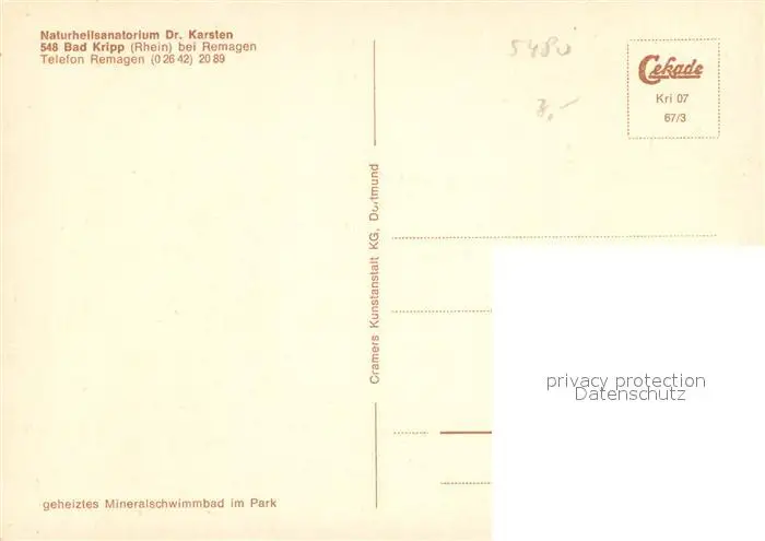 Bad_Kripp Naturheilsanatorium Dr. Karsten Swimming Pool Bad_Kripp postalisch nicht gelaufen 1967 Erhaltung siehe scans [FriedD77] Frierer