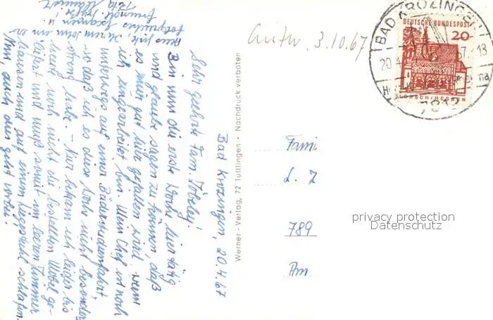 Bad_Krozingen Theresienbad Termalbad Kath Kirche Kurhaus Partie am Neumagen Bad_Krozingen postalisch gelaufen 1967 Erhaltung siehe scans [WerneD78] WernPID7