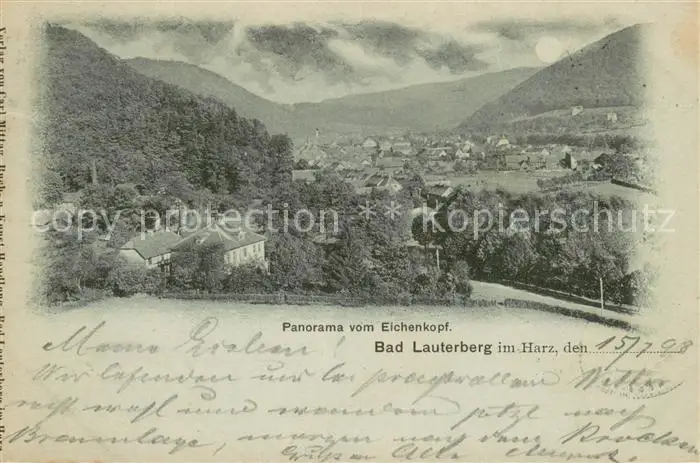 Bad_Lauterberg Panorama vom Eichenkopf Bad_Lauterberg postalisch gelaufen 1898 Bahnpost Erhaltung siehe scans [WerneD78] Bahnpost WernPID7