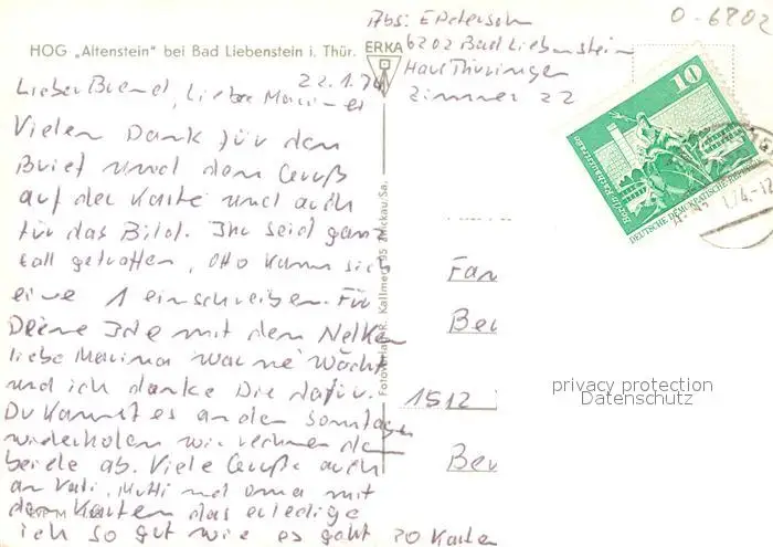 Bad_Liebenstein HOG Altenstein Bad_Liebenstein postalisch gelaufen 1974 Erhaltung siehe scans [WerneD78] WernPID7