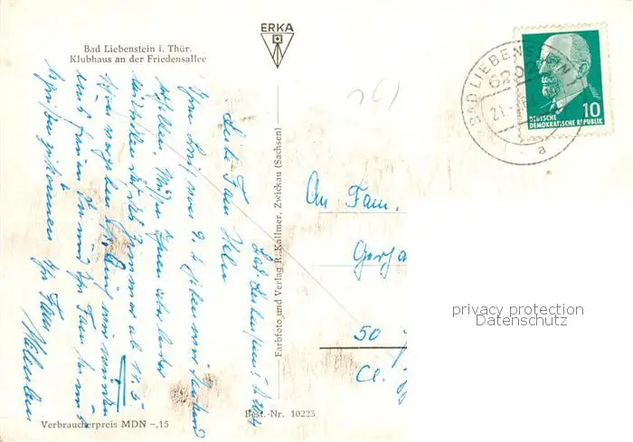 Bad_Liebenstein Klubhaus an der Friedensallee Bad_Liebenstein postalisch gelaufen nach 1965 Erhaltung siehe scans [WerneD78] WernPID7