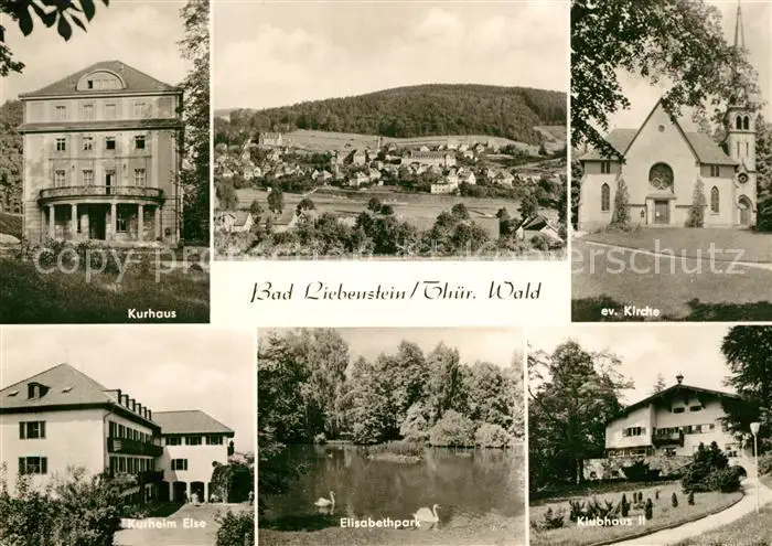 AK / Ansichtskarte Bad_Liebenstein Kurhaus Kurheim Else Elisabethpark Schwanenteich Klubhaus II Kirche Landschaftspanorama Bad_Liebenstein