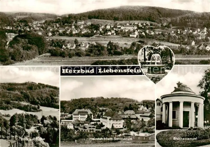 AK / Ansichtskarte Bad_Liebenstein Panorama Brunnen Blick zur Ruine Landschaft Heinrich Mann Sanatorium Brunnentempel Bad_Liebenstein
