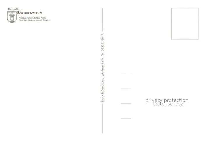 Bad_Liebenwerda Postsaeule Rathaus Fontana Klinik Elsterwehr Denkmal Friedrich Wilhelm III Bad_Liebenwerda postalisch nicht gelaufen nach 1965 Erhaltung siehe scans [FriedD77] Frierer