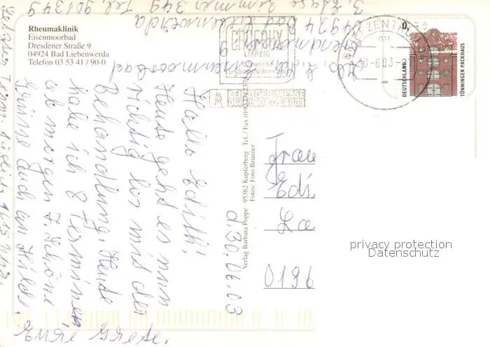 Bad_Liebenwerda Rheumaklinik Eisenmoorba Aufenthalts und Speiseraum Zimmer Bad_Liebenwerda postalisch gelaufen 2003 Erhaltung siehe scans [WerneD78] WernPID7