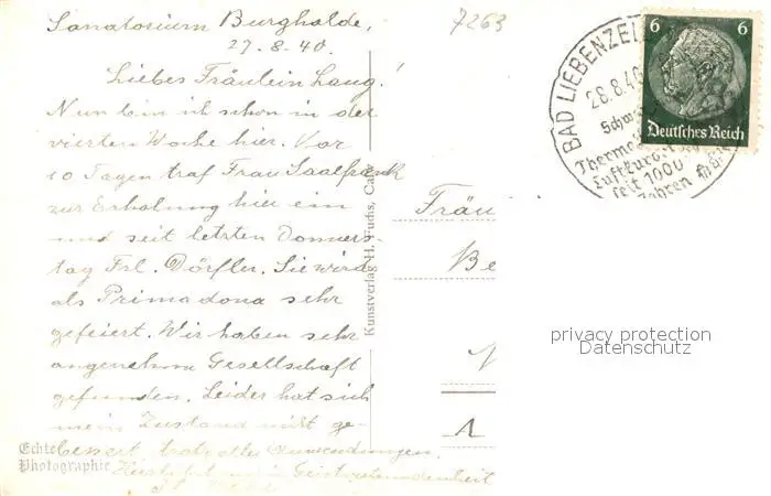 Bad_Liebenzell Blumenwiese Sanatorium Burghalde Bad_Liebenzell postalisch gelaufen 1940 Erhaltung siehe scans [FriedD77] Frierer