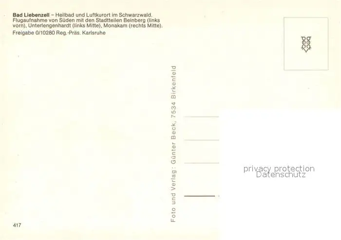 Bad_Liebenzell Fliegeraufnahme mit Unterlengenhardt und Monakam Bad_Liebenzell postalisch nicht gelaufen nach 1965 Erhaltung siehe scans [WerneD78] WernPID7