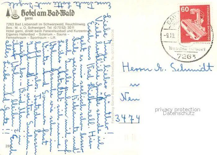 Bad_Liebenzell Hotel am Bad-Wald Hallenschwimmbad Fruehstuecksraum Paracelsiusbad Bad_Liebenzell postalisch gelaufen ca. 1990 Erhaltung siehe scans [FriedD77] Frierer