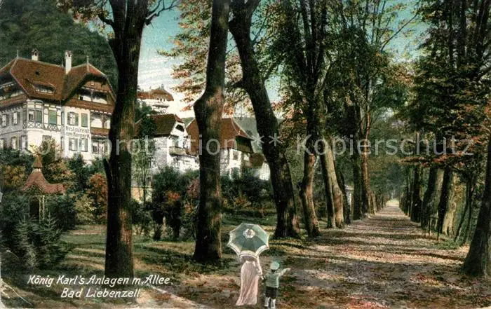 Bad_Liebenzell Koenig Karls Anlagen mit Allee Bad_Liebenzell postalisch gelaufen bis 1920 Erhaltung siehe scans [LiesaD40] LiesID40