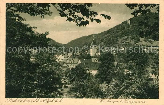 AK / Ansichtskarte Bad_Liebenzell Ortsansicht mit Kirche und Burgruine Bad_Liebenzell