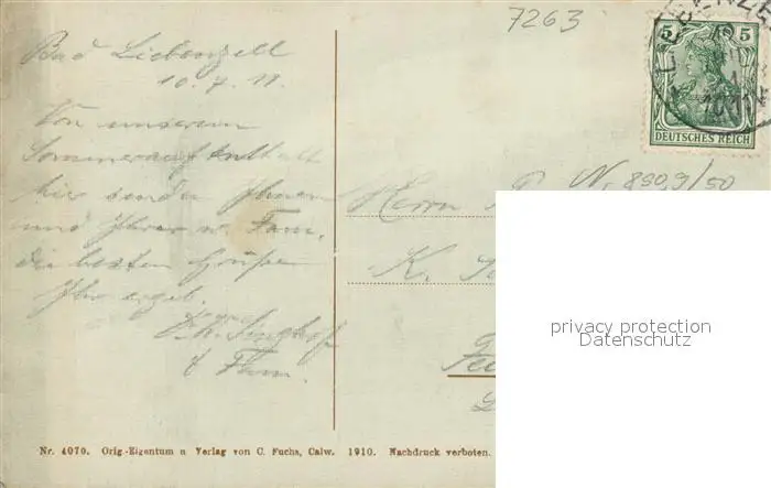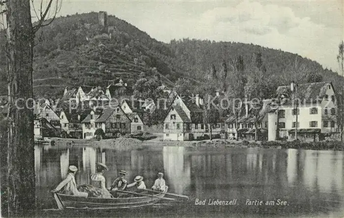 Bad_Liebenzell Partie am See Blick zur Burg Bad_Liebenzell postalisch gelaufen 1911 Erhaltung siehe scans [FriedD77] Frierer