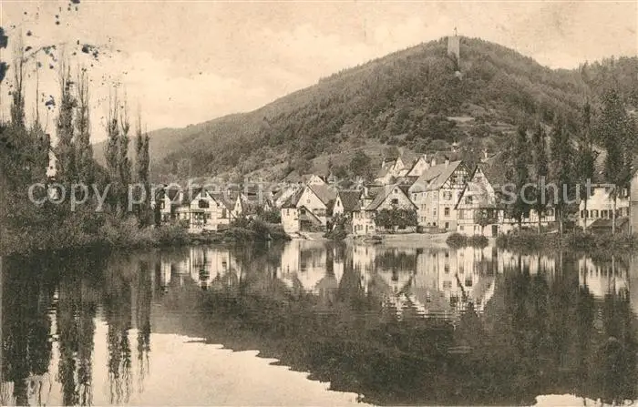 Bad_Liebenzell Partie am See Blick zur Burg Kurort im Schwarzwald Bad_Liebenzell postalisch gelaufen 1911 Erhaltung siehe scans [FriedD77] Frierer