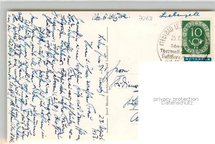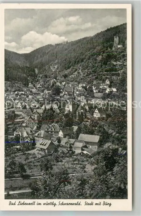 Bad_Liebenzell Stadtansicht mit Kirche und Burg Kurort im Schwarzwald Bad_Liebenzell postalisch gelaufen 1953 Erhaltung siehe scans [FriedD77] Frierer