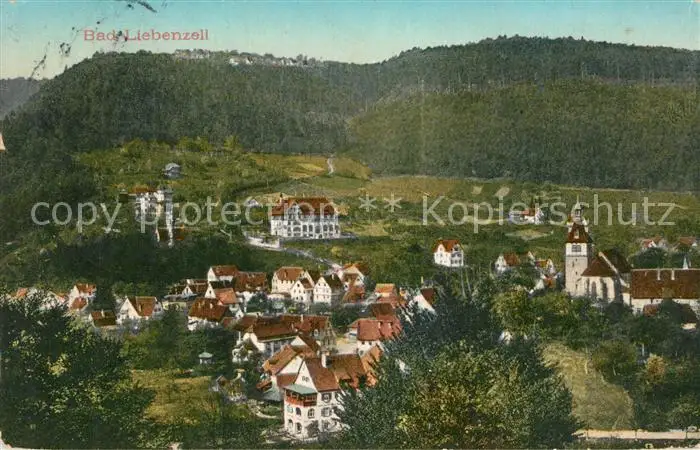 Bad_Liebenzell Teilansicht mit Kirche Kurort im Schwarzwald Bad_Liebenzell postalisch gelaufen 1913 Erhaltung siehe scans [FriedD77] Frierer