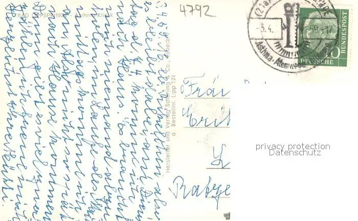 Bad_Lippspringe Asthma-Klinik Bad_Lippspringe postalisch gelaufen 1959 Erhaltung siehe scans [LiesaD40] LiesID40