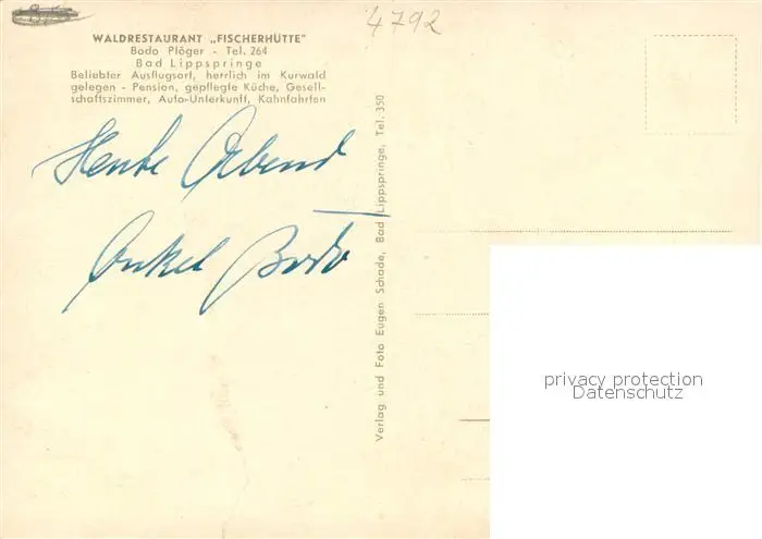 Bad_Lippspringe Waldrestaurant Fischerhuette Eingang Terrasse und Teich Bad_Lippspringe postalisch nicht gelaufen 1921-1965 Erhaltung siehe scans [LiesaD40] LiesID40