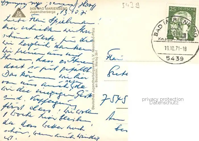 Bad_Marienberg Jugendherberge Gaststube Treppenaufgang Park Bad_Marienberg postalisch gelaufen 1971 Erhaltung siehe scans [FriedD77] Frierer