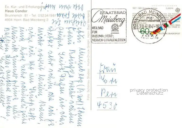 Bad_Meinberg Kategorie Alte Ansichtskarten Postkarten bx45601 Bad_Meinberg Erholungsheim Haus Condor Bad_Meinberg postalisch gelaufen 1984 Erhaltung siehe scans [LiesaD40]