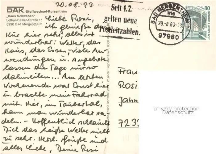 Bad_Mergentheim DAK Stoffwechsel Kurzentrum Haus Schwaben Hallenbad Terrasse Bad_Mergentheim postalisch gelaufen 1993 Erhaltung siehe scans [WerneD78] WernPID7