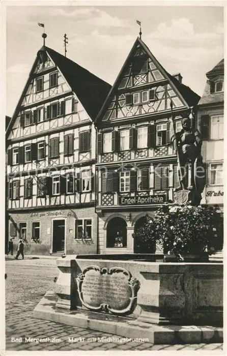 Bad_Mergentheim Markt mit Milchlingsbrunnen Bad_Mergentheim postalisch nicht gelaufen 1921-1965 Erhaltung siehe scans [WerneD78] WernPID7