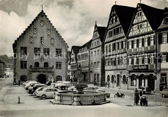 Bad_Mergentheim Marktplatz mit Brunnen Bad_Mergentheim postalisch nicht gelaufen nach 1965 Erhaltung siehe scans [WerneD78] WernPID7