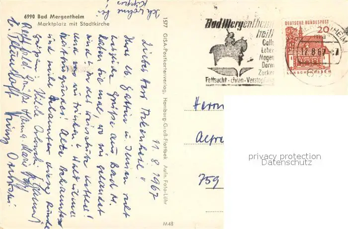 Bad_Mergentheim Marktplatz mit Stadtkirche Bad_Mergentheim postalisch gelaufen 1967 Erhaltung siehe scans [WerneD78] WernPID7